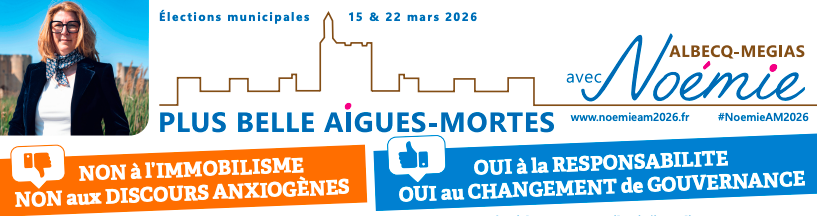 Aussi, j’ai l’honneur de vous annoncer ma candidature à la fonction de maire d’Aigues-Mortes pour les élections municipales de mars 2026 et de solliciter votre soutien.